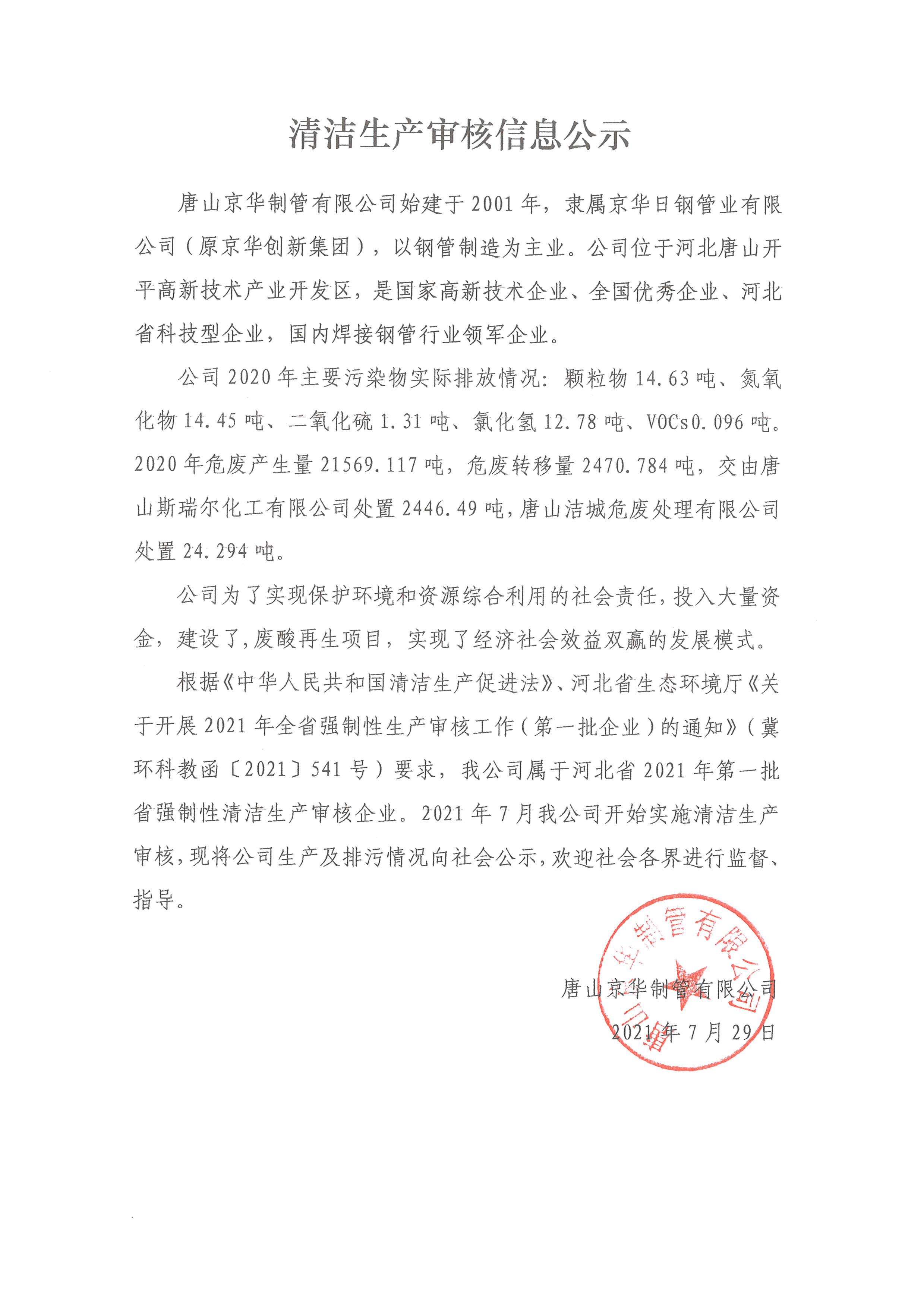 WELCOME TO Tangshan Jinghua Steel Pipe Co.,Ltd.