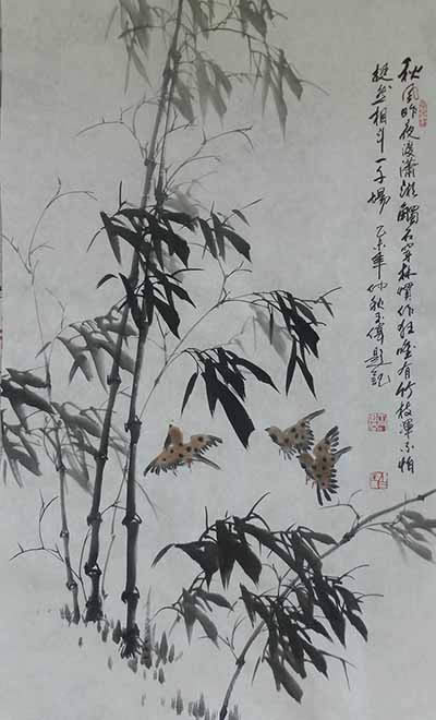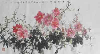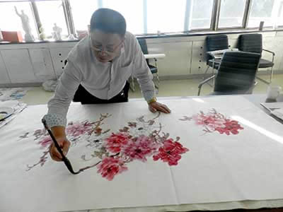 10月7日,当代著名画家王玉伟到访安博电子_安博电子(中国),受到公司领导热情接待。图为王玉伟即兴创作《花开富贵》。(办公室 冯继宏)